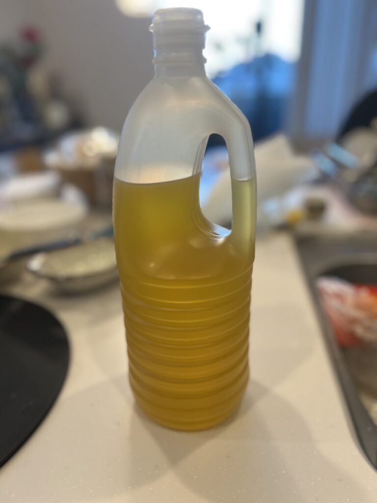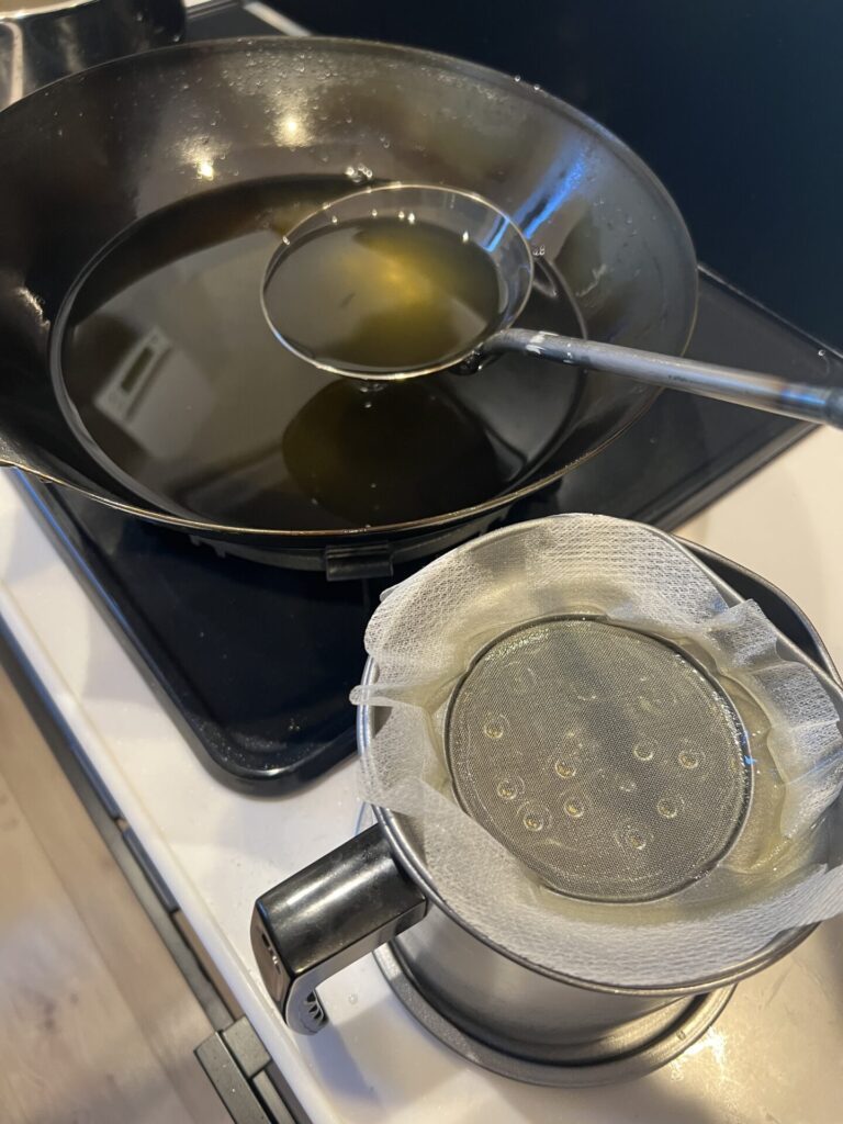 - 油を濾してボトルに詰める