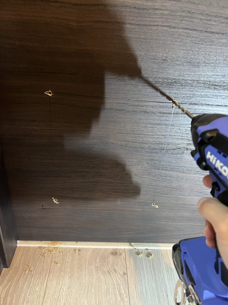 手順2 インパクトドライバーで四隅に下穴を開ける