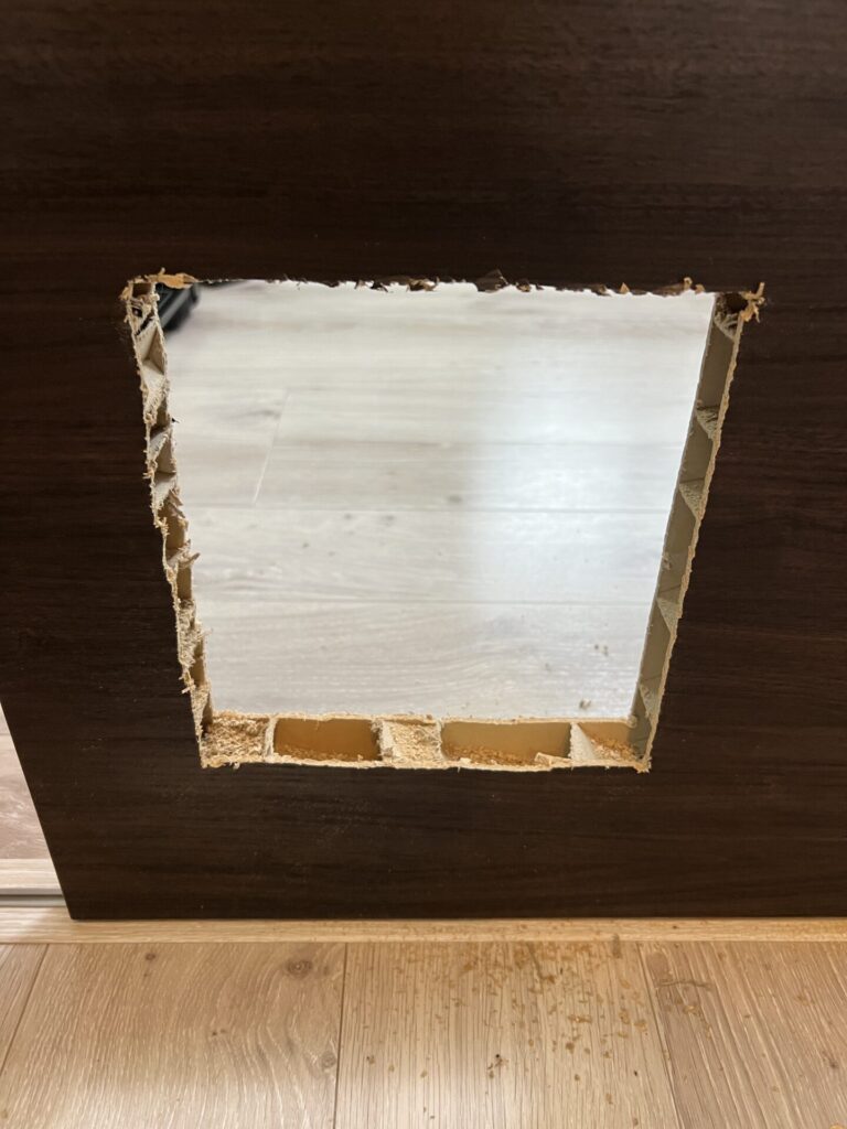 外ツラは床面から100mm(猫が通りやすい高さ)