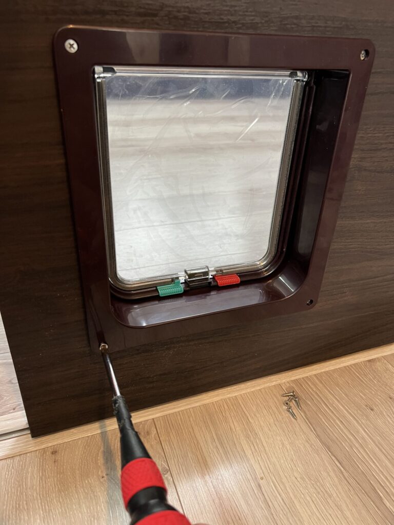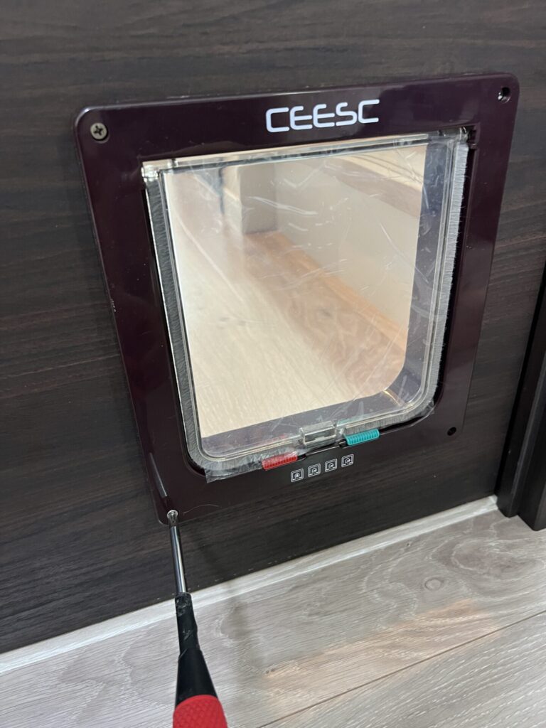 ペットドアと取付ました。商品はこちらです。https://amzn.to/4qoGca8