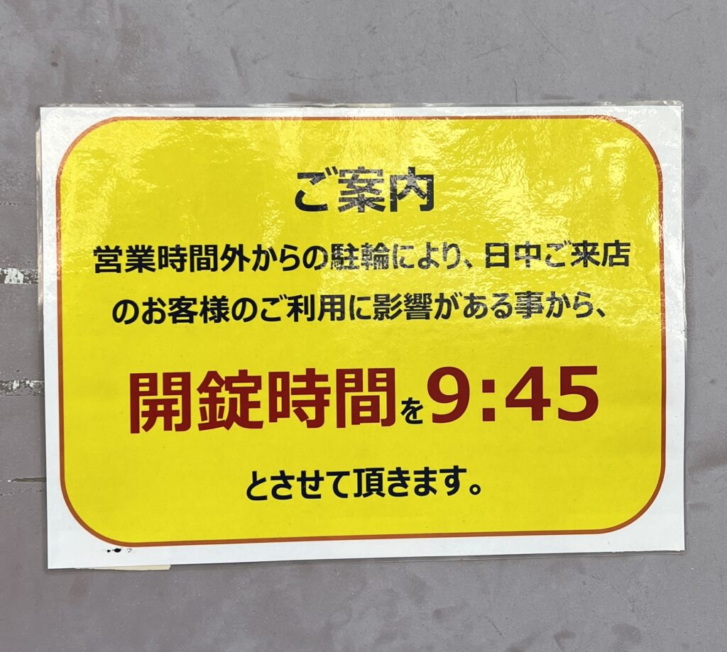 しかし、バイクの利用開始時間が9:45〜なので遅いです。