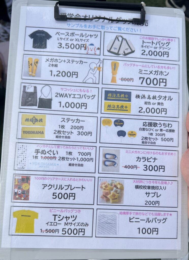 観戦応援の際に絶対に欲しい横浜高校オリジナルタオルを入手することができます。