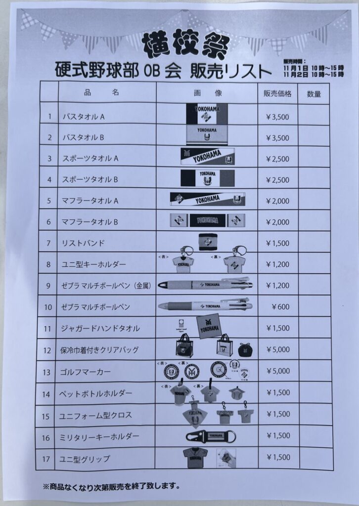 横浜高校の文化祭グッズは各テント毎に取り扱っているグッズが異なります。